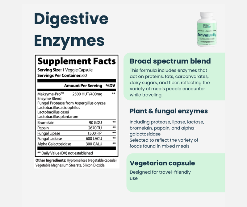 Instead of relying on a single solution, this approach supports how your body actually digests food and maintains gut balance during stress, travel days, and dietary changes.