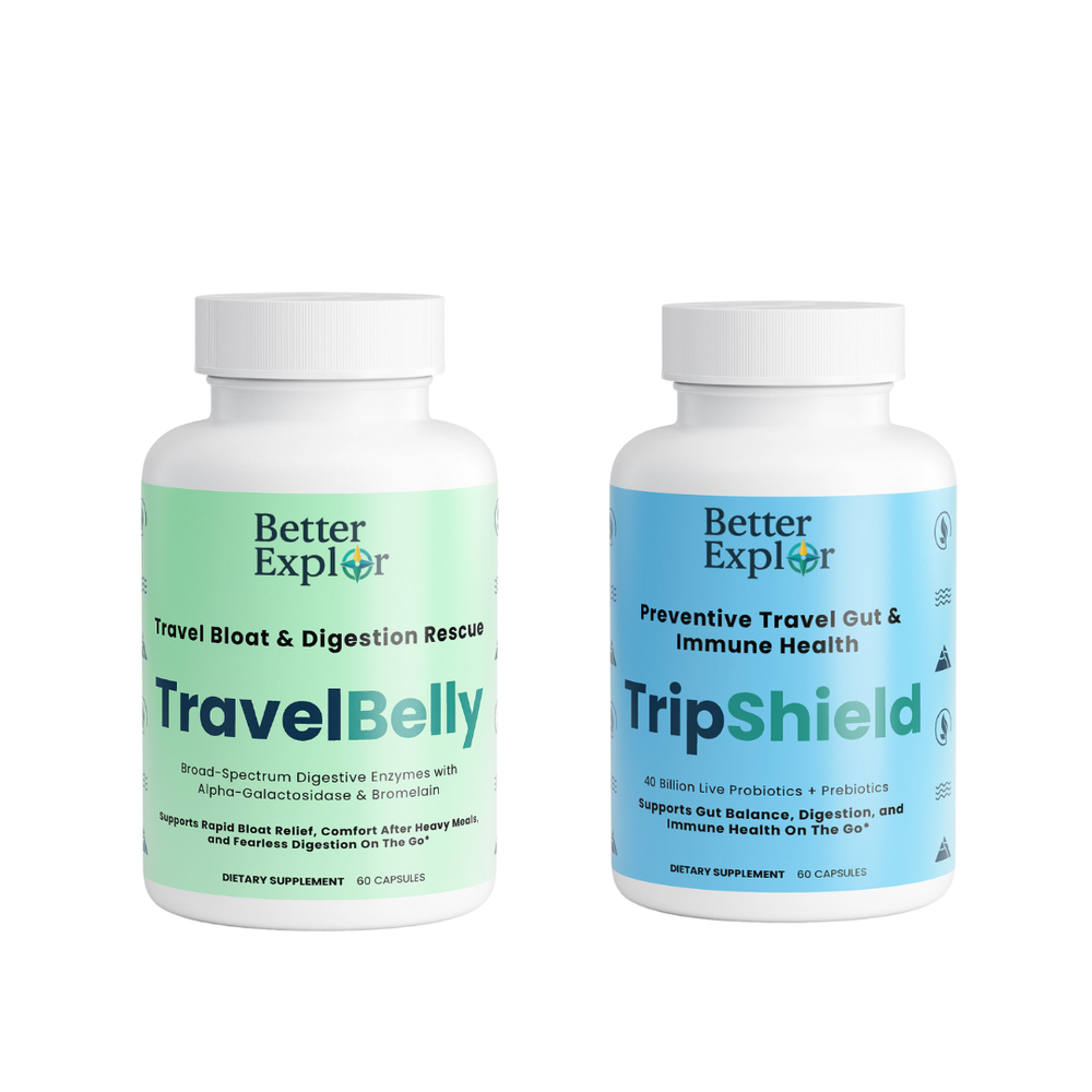 Instead of relying on a single, low-dose blend, this pack separates digestive enzymes (TravelBelly) and probiotics (TripShield) into two purpose-built formulas so each can be used when it makes the most sense during travel.